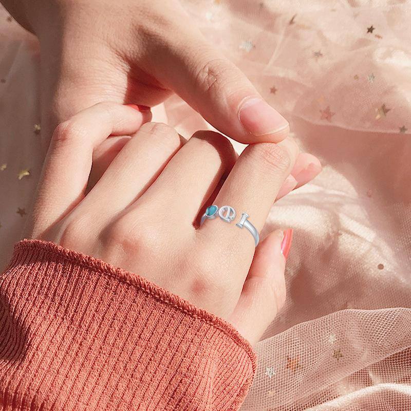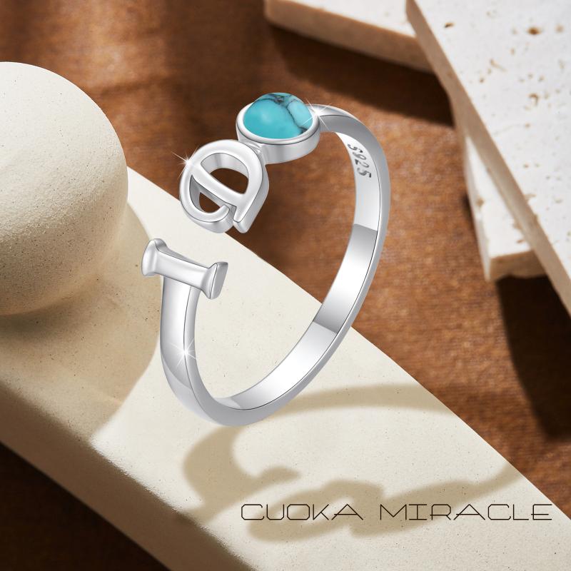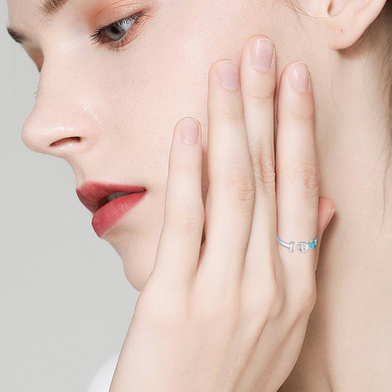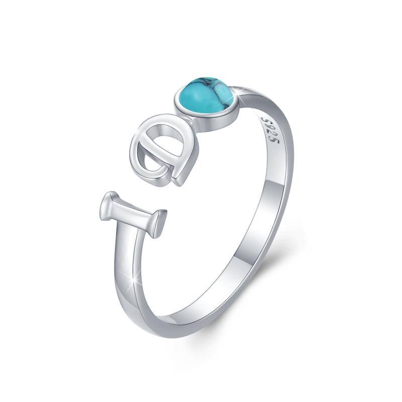 S925 Sterling Silver I Do Ring Synthetic Turquoise Promise Open Adjustable Ring